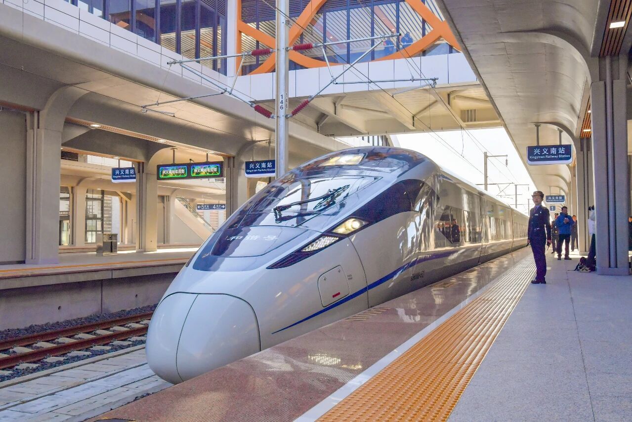 11月28日9时38分,由兴义南站开往贵阳北站的G5356次首趟动车组列车从站台缓缓驶出,标志着历经4年攻坚的盘兴高速铁路正式通车运营。至此,贵州省实现9个市(州)行政中心全部高铁直达,成为西南地区首个“市市通高铁”省份。 详情>>>