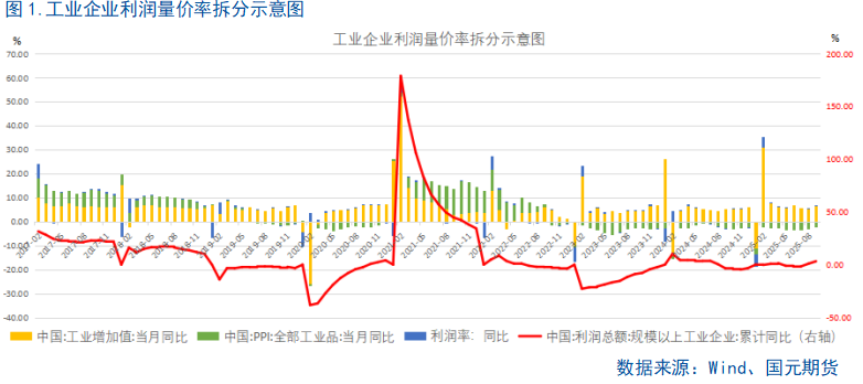 从整体来看,2025年9月份的规模以上工业企业利润累计同比增速为3.2%,较上个月出现明显回升。本月工业企业利润增速出现明显改善的原因一方面是由于去年的低基数的影响。另一方面工业生产的显著上行也是利润改善的主因之一。区分量、价、率三方面来看,9月份工业企业利润整体呈现“量价齐升、利润率改善”的显著特征。