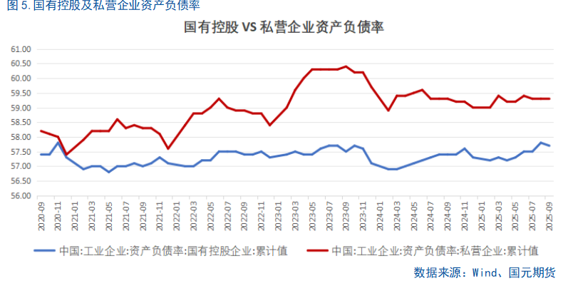 对比营业收入和产成品库存,9月产成品库存名义库存出现反弹,但扣除价格因素的实际库存增速较前值有0.2%的回落,实际库存增速尚未见反弹但环比跌幅已经出现收窄迹象。9月伴随着出口增速的明显回升以及PPI的小幅改善,企业生产意愿虽然仍然偏谨慎,但出现边际增强,生产与销售呈现紧平衡状态相互牵制,逐渐出现主动补库的迹象。营收账款平均回收天数虽然同比仍在增加,但是环比出现减少,且环比降幅高于季节性,企业压降费用对冲了部分成本上行带来的压力,应收账款周转出现改善。分企业类型来看,反内卷的影响之下,私营企业利润增速出现明显改善,对比本轮反内卷与15年供给侧改革来看,本轮所涉及行业新增新兴行业,民营企业占比也明显增加,且光伏等产业面临利润亏损问题,因此本轮反内卷支撑下私营企业利润的改善可能更快。